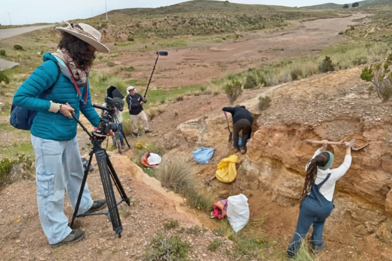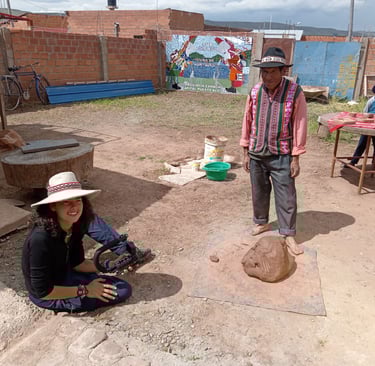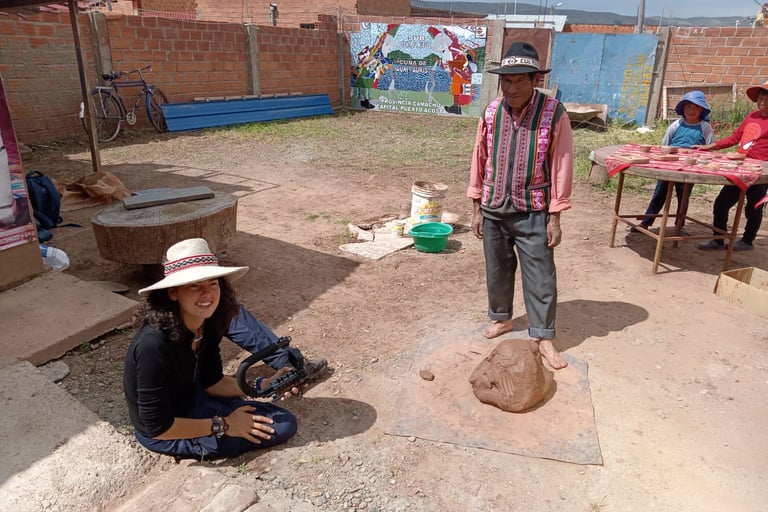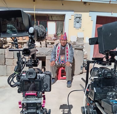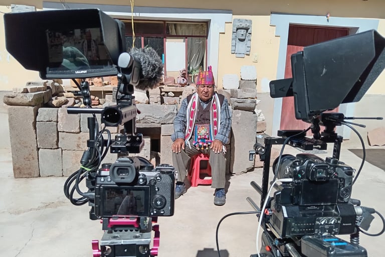 Nous réaliserons le tournage en collaboration avec l'association ACATI: el camino de la Tierra, qui coordonnera le tournage à Tiwanaku et aux alentours. Le tournage durera 8 jours avec une équipe de 3-4 personnes puis je (Anaïs) continuerai à tourner seule. Un tournage dans des conditions parfois difficile. A 3800m d'altitude, les matinées et soirées sont très froides tandis que le soleil de la journée est très fort. Nous aurons l'occasion de rencontrer et interviewer une dizaine de personnes du village et de participer à divers rituels traditionnels dont la célébration de l'équinoxe du printemps dans les temples.